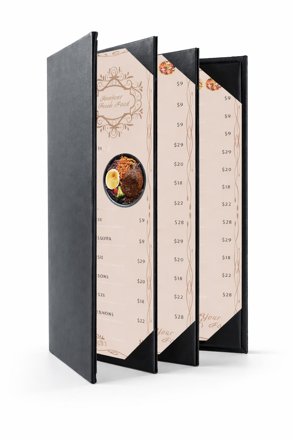 Book Style Double Fold Panel Menu Cover for Bar and Cafe, Restaurant Menu Covers, Juice and Beverage Folder- 6 View