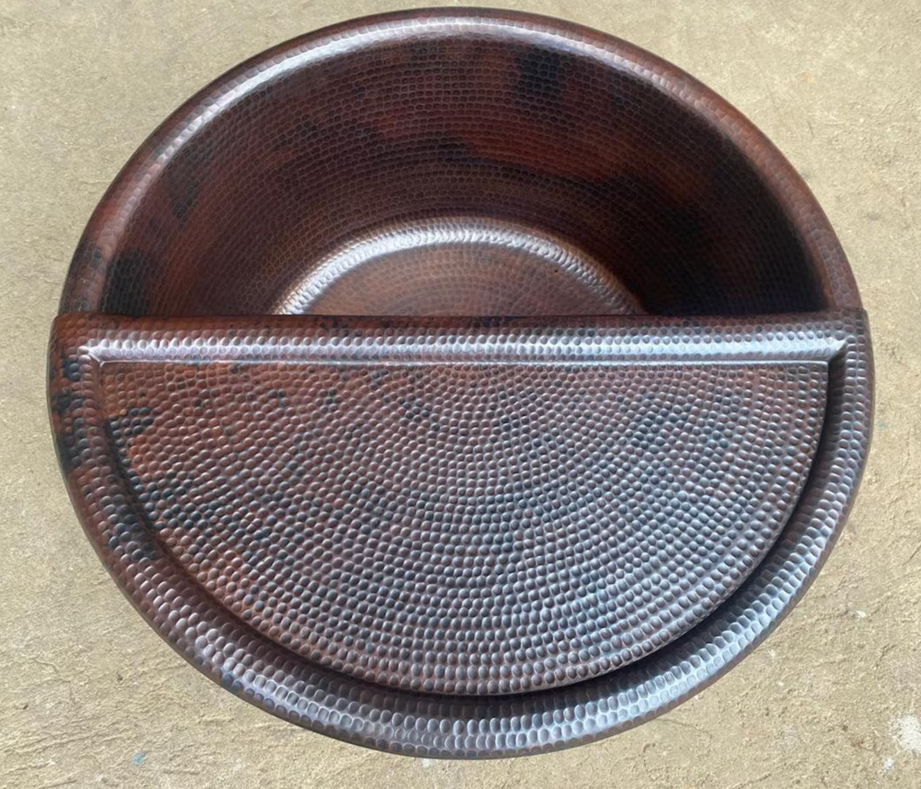 Pure Copper Antique Hammered Pedicure Bowl with Foot Rest, Dia: 16"