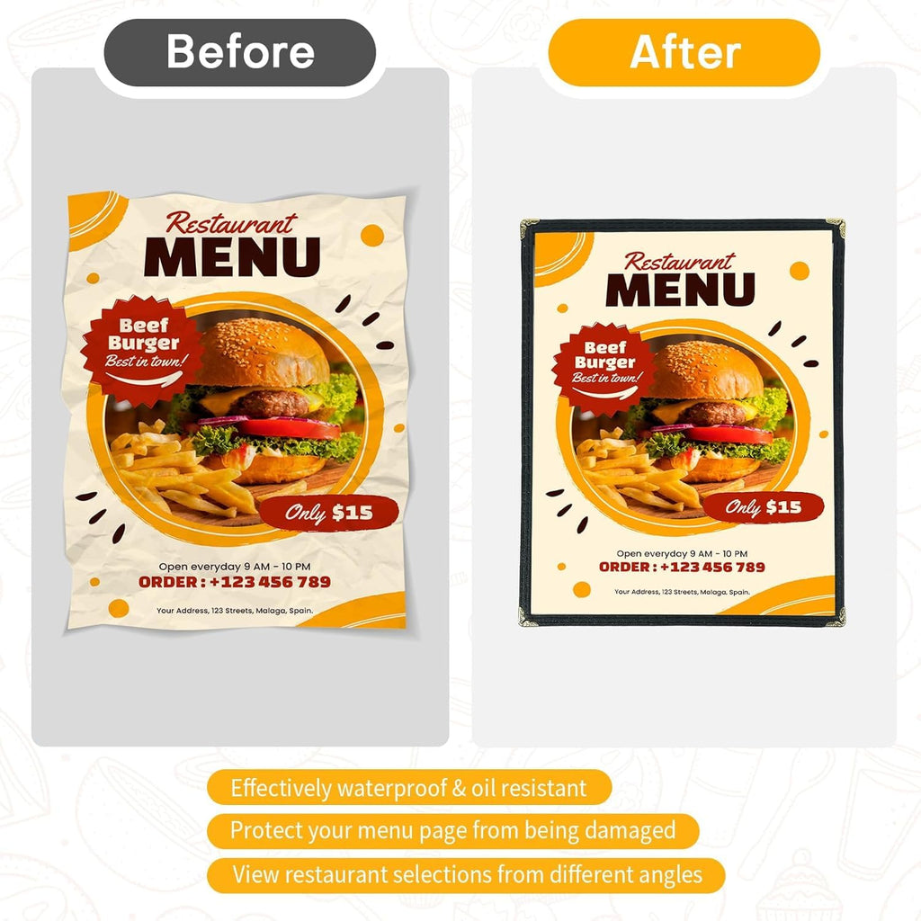 Divris Restaurant Menu Sleeve, Menu Holder, Cafe Bar Beverage Menu Folder, Clear PVC Menu Folder: 2 View
